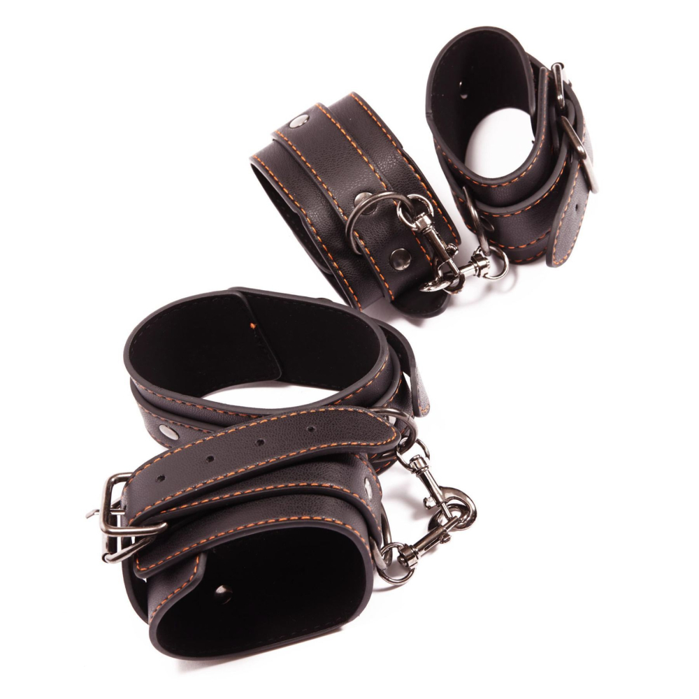 Всі деталі набору витримані в одному стилі: чорний колір, помаранчева строчка і бронзовий відтінок металевих деталей — строго і збудливо. Відкривайте свої найтемніші фантазії, відчуйте свою силу і владу. Примусьте партнера стогнати від насолоди і продовження — а вже тільки ви вирішите, скільки триватиме ця солодка мука.