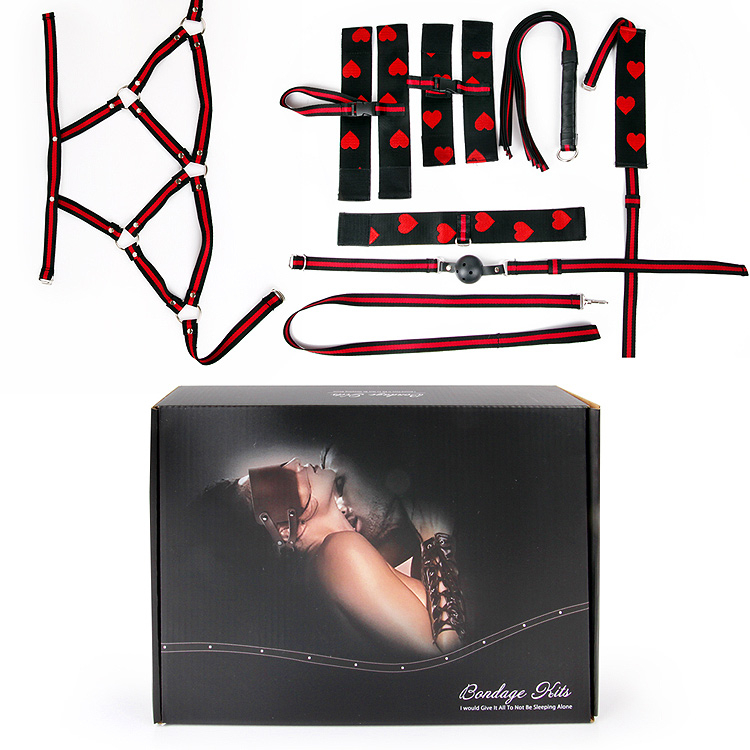 Чудовий набір аксесуарів для любителів БДСМ. У комплект входять наручники, кайдани, нашийник з повідцем, батіг, кляп, маска, збруя.