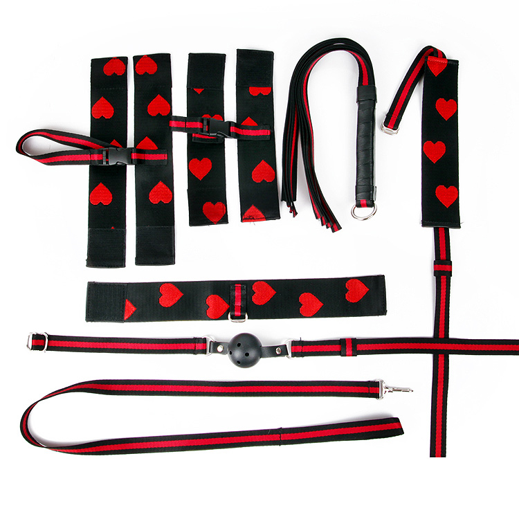 Поверхні наручників, кайданів, нашийника і маски прикрашені красивими сердечками.