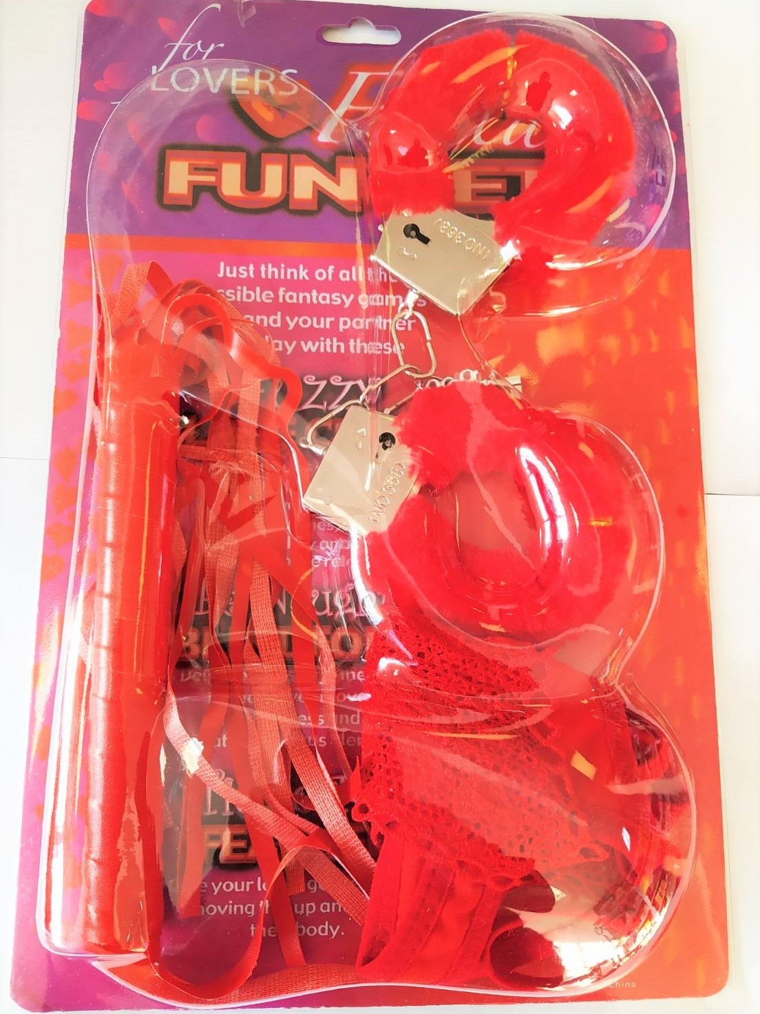 Барвистий набір "Fantasy Fetish" 3в1 (Наручники+батіг + стрінги),підійде для тих, хто тільки починає відкривати для себе світ БДСМ. У ньому є все, що може знадобитися вам для того, щоб зануритися в ігри зі світлом і тактильними відчуттями.