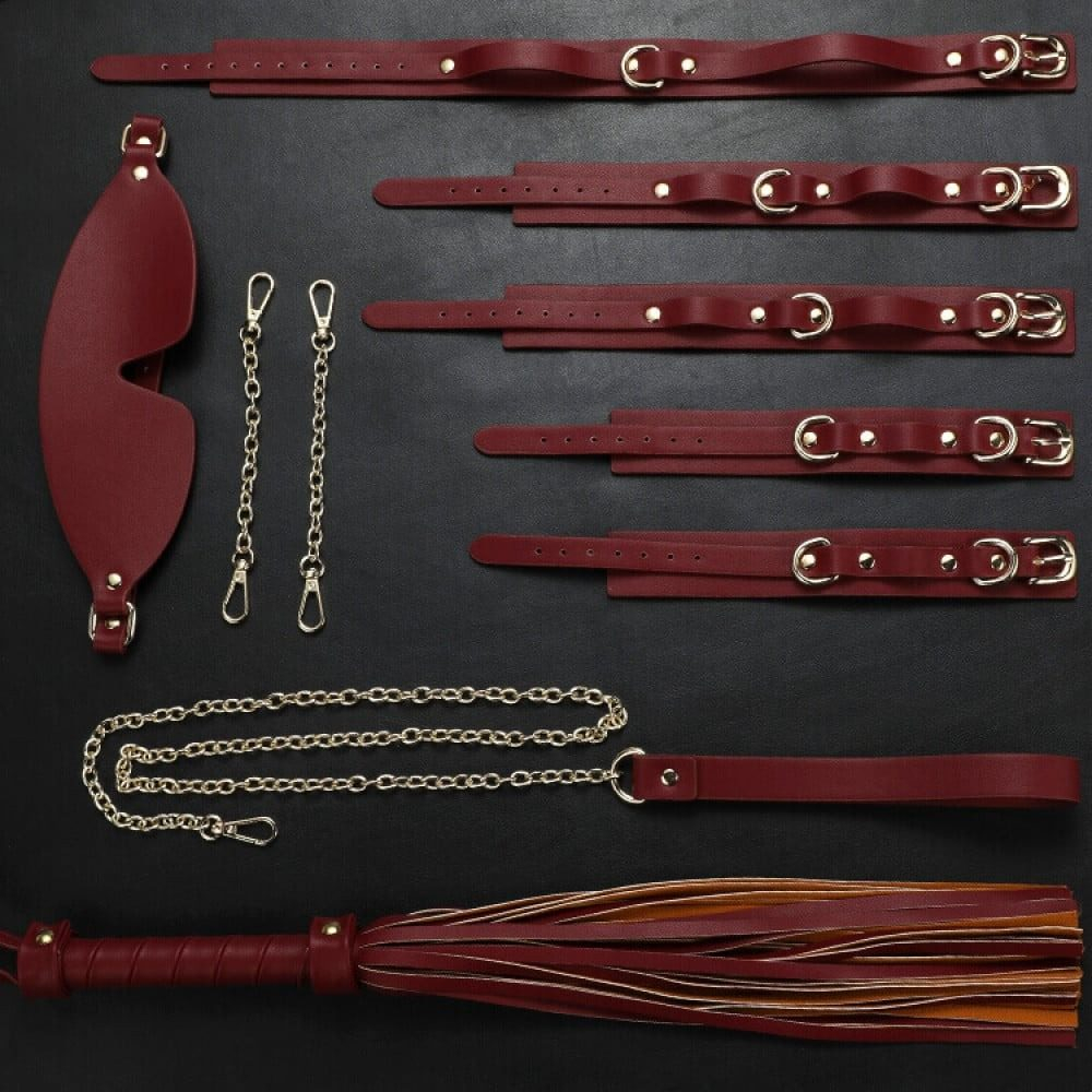 Набір БДСМ з екошкіри Roomfun 6 предметів, бордовий