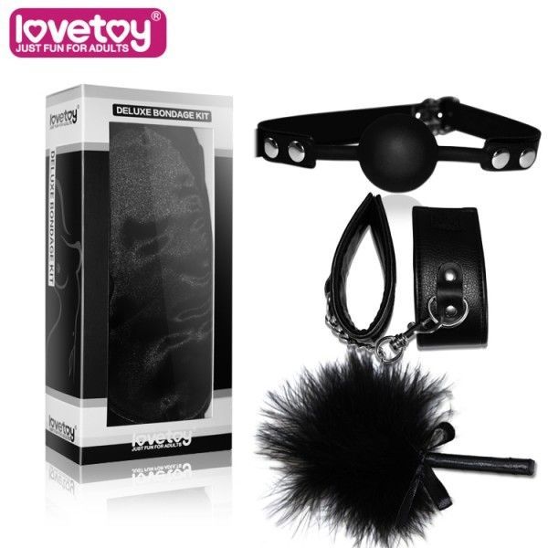 Характеристики Набір для БДСМ-ігор Lovetoy чорний (наручники,кляп, стек)
