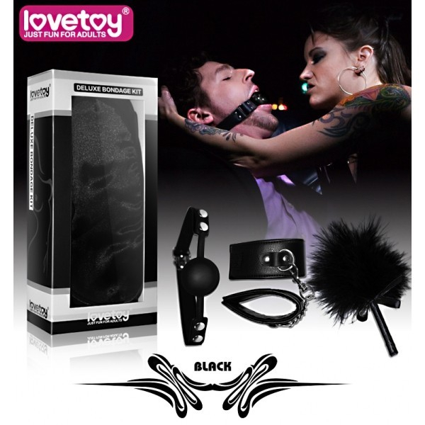 Набір для БДСМ-ігор Lovetoy чорний (наручники,кляп, стек)