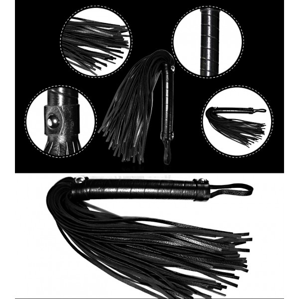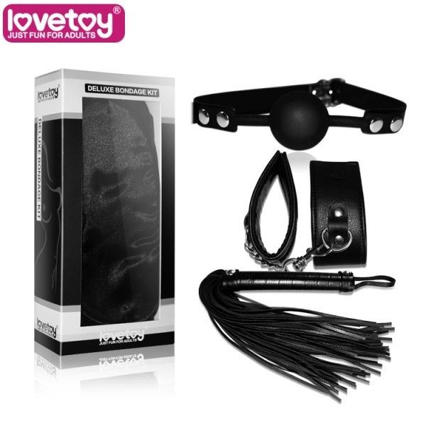 Комплект чорного кольору з високоякісного матеріалу. Складається з батога довжиною 25,4 см., м'яких наручників і кляпа з діаметром кулі 4 см.