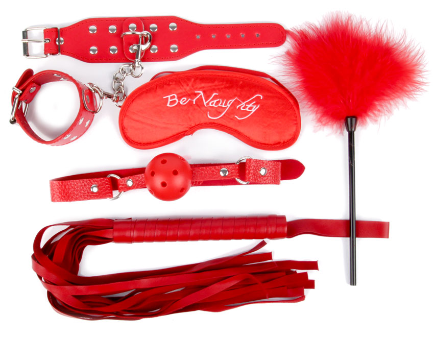 Комплект яскраво-червоного кольору складається з 5 предметів: наручники, маска, кляп, батіг і лоскоталка з пухом. Виконані з матеріалу ПВХ і текстиль. Можна використовувати весь комплект для ігор або окремо, все залежить від Вашого бажання!