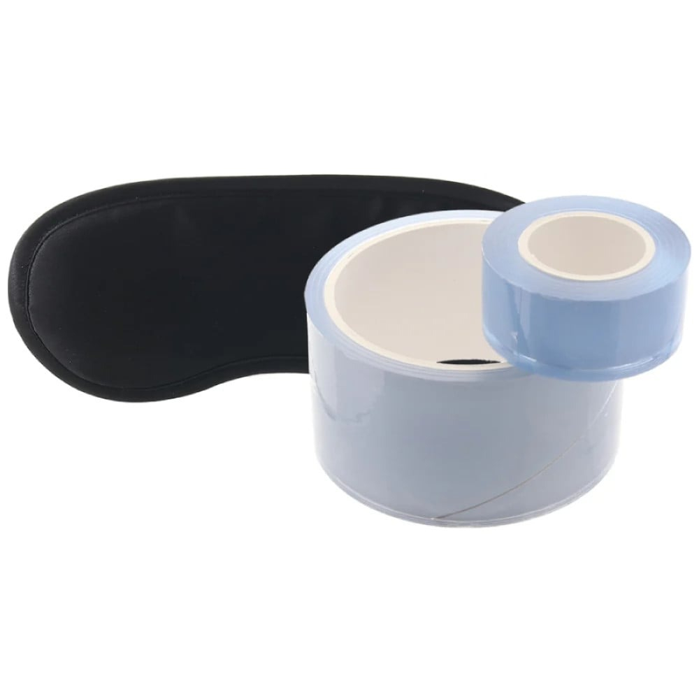 Набір БДСМ WhipSmart Bondage Tape стрічка для бондажу прозора з чорною маскою для очей
