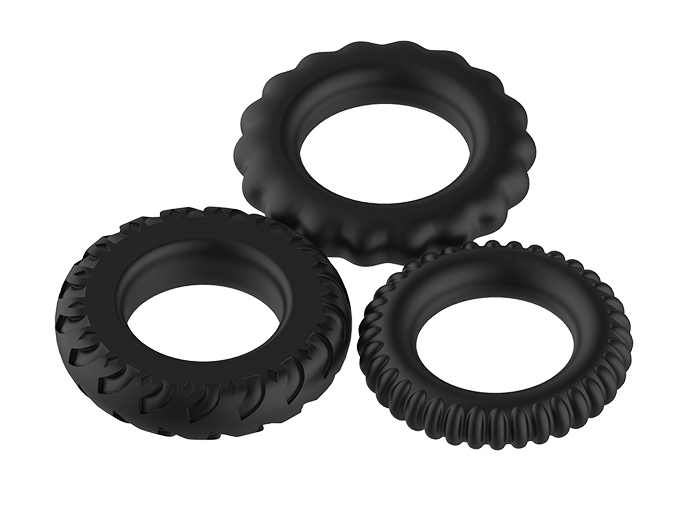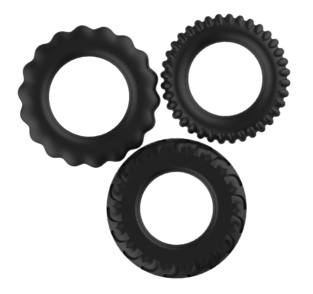 Набір з 3 силіконових кілець чорного кольору різного діаметру і форми. Еластичні, легко розтягуються до необхідного розміру.