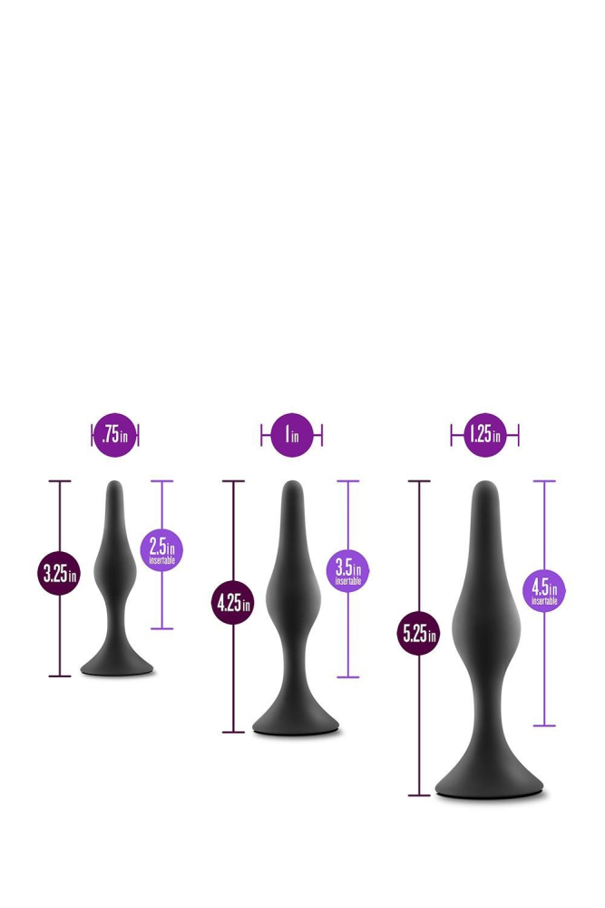 Характеристики Набір із трьох анальних пробок різних розмірів силіконових чорних Blush