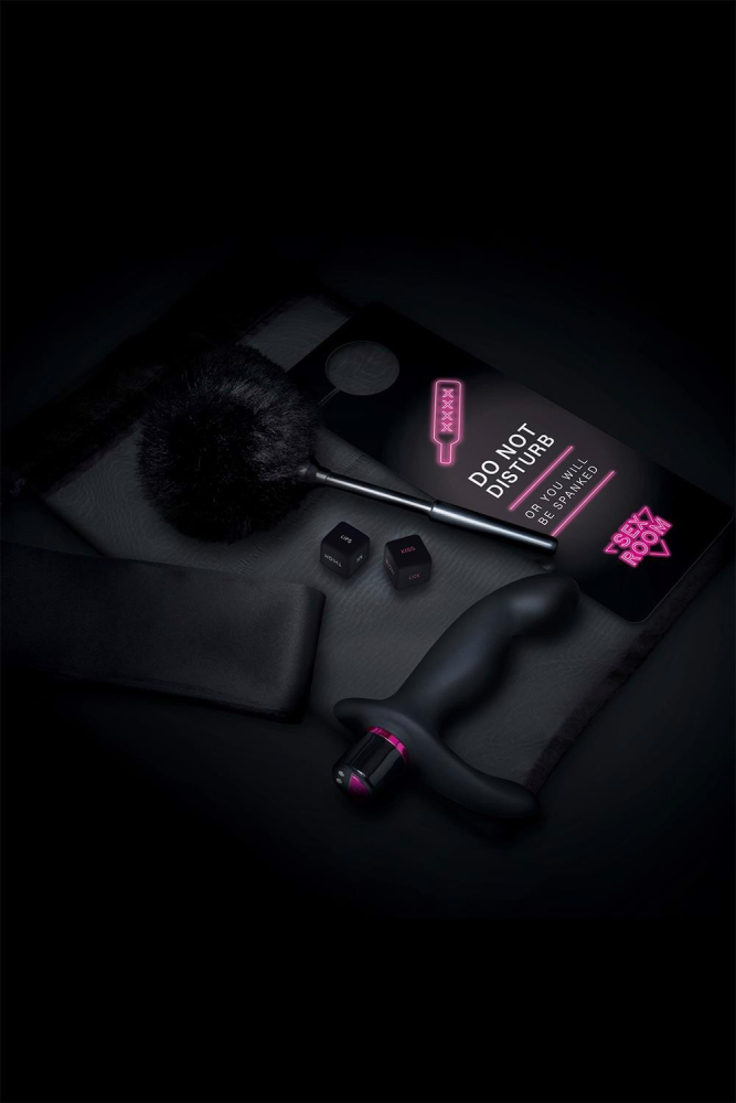 У комплект входить: - Перезаряджається масажер простати - Тіклер з пір'я - 2 еротичні гральні кубики - пов'язка на очі з атласу. - Мішечок з органзи - Дверна вішалка
