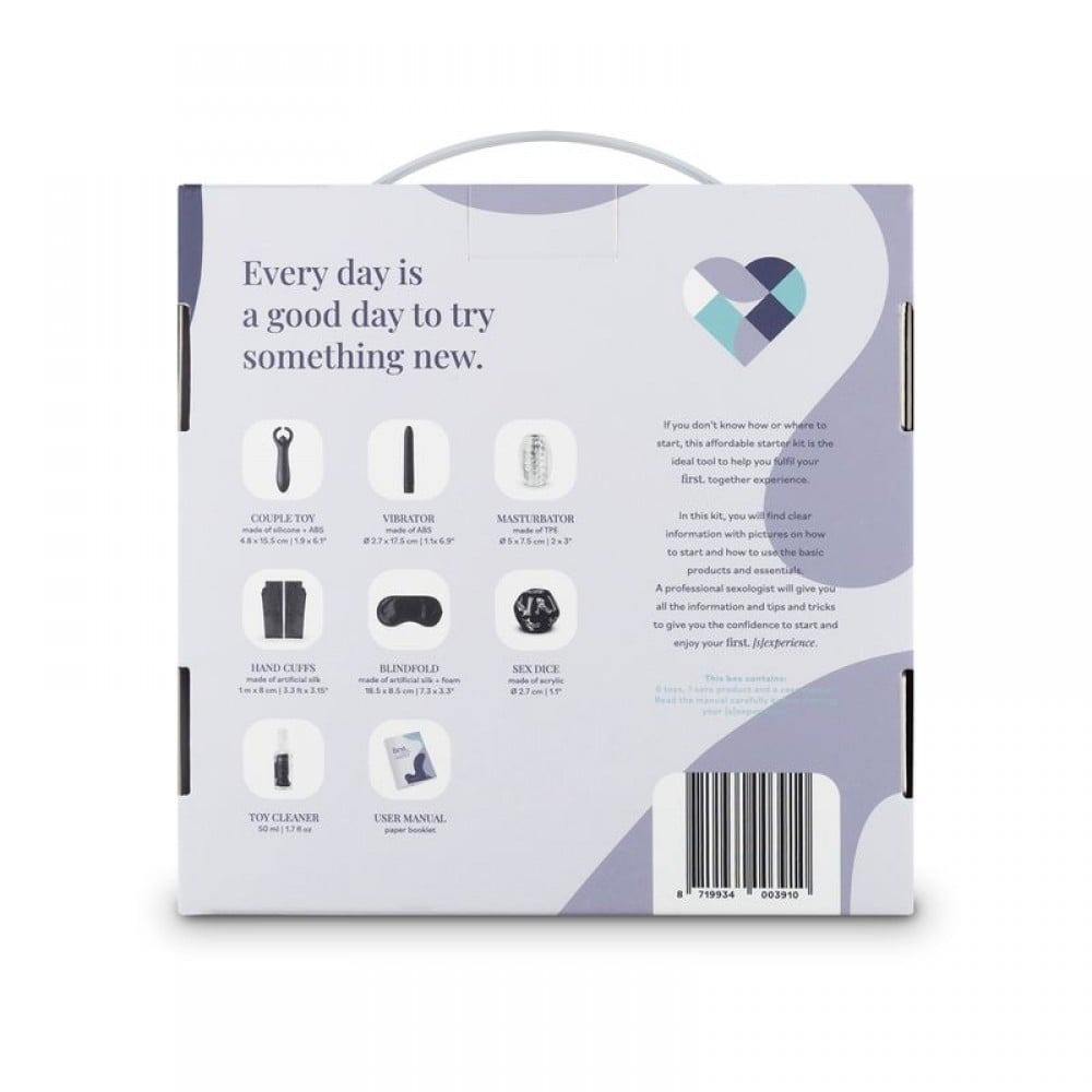 перший. Стартовий набір Together [S]Experience - це ідеальна стартова коробка для пар, яким цікаво користуватися іграшками, але практично немає досвіду. У цій коробці є дивовижний, повноцінний вміст для багатьох захоплюючих вечорів у спальні. Гарний дизайн робить цю коробку ідеальною для того, щоб подарувати її як подарунок. У коробці багато іграшок, щоб дражнити і радувати один одного. Ця іграшка для пар підходить для обох партнерів і може використовуватись для стимуляції піхви, клітора чи пеніса. Вібратор bullet оснащений 10 різними налаштуваннями вібрації та знімним вібратором bullet. Мастурбатор спеціально розроблений для масажу статевого члена. Еластичний рукав прикрашений стимулюючими ребрами та заклепками. Використовуйте вібратор для вивчення чутливих місць один одного. Ви могли б повільно збільшувати інтенсивність вібрації за допомогою безперервного контролю. Всі іграшки виготовлені з безпечного для тіла матеріалу та зручні у використанні. Зробіть це ще більш захоплюючим із пов'язкою на очах та атласними манжетами або попросіть кістки вирішити, якою буде ваша наступна позиція. У набір також входить зручна пляшечка із засобом для чищення іграшок. Великий і відверто написаний посібник (англійською мовою) рясніє поясненнями, що можна і чого не можна робити, і надає вам достатньо впевненості, щоб почати цю нову подорож. Розміри та інформація іграшки: - іграшка для пар: довжина 15,5 см, глибина вставки 10,5 см. Мінімальний діаметр 3 см та максимальний діаметр 4,8 см. Знімна куля працює від 1 батарейки типу ААА (входить до комплекту) - вібратор : довжина 17,5 см. Діаметр: 2,7 см. Вібратор працює від 2 батарейок типу АА (входять до комплекту) - мастурбатор: довжина 7,5 см. Зовнішній діаметр: 5 см. Матеріал дуже гнучкий, тому підходить для більшості пенісів . - пов'язка на очі: довжина 185 см (приблизно). Ширина: 8,5 см. Еластична стрічка. На м'якій підкладці. - атласні стрічки завдовжки 1 метр. Ширина: 8 см. Склад засобу для чищення іграшок: Вода (Aqua), кокамідопропілбетаїн, пропіленгліколь, бензалконію хлорид, феноксіетанол, глюконат цинку, віддушка. Вміст: 50 мл Засоби для чищення іграшок поставляється у зручному флаконі-розпилювачі.