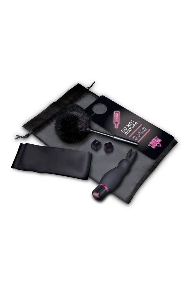 Thi Sex Room Raunchy - ідеальний набір, який перетворить будь-який простір на ігрову кімнату для непослуху. У цей набір входить пара еротичних гральних кубиків, тиклер з пір'я та атласна пов'язка на очі для вивчення сенсорної гри, а також потужна віброкуля.