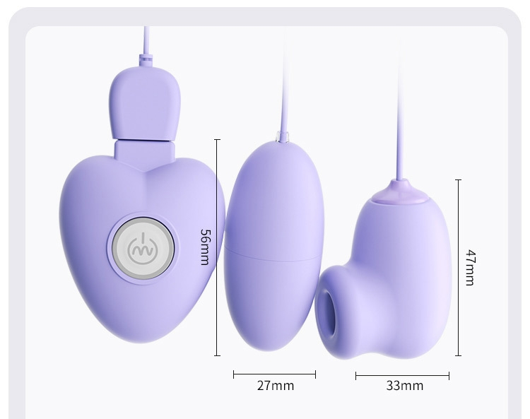 Дуже потужні та активні масажери для ваших ерогенних зон! Ці маленькі помічники помістяться в будь-яку сумочку і відмінно підходять як для жінок мандрівниць, так і для жінок, які бажають швидко та якісно отримати безліч оргазмів. Секс-іграшка зроблена з матового пластику фіолетового кольору і вміщує маленьке вібруюче яйце і маленький вакуумний масажер для клітора або сосків. Яйце та вакуумник працюють від одного пульта управління, до якого вони підключаються шнуром. Для включення затисніть кнопку по центру пульта на 3 секунди і ви відразу відчуєте потужний потік вібрації та вакууму, що виходять з девайсів. Клацніть на цю кнопку вибираючи потрібний режим і силу вібрації. У яйці та вакуумному стимуляторі окремі мотори, але при перемиканні вібрації вони перемикаються одночасно. Щоб вимкнути, натисніть середню кнопку на пульті на 3 секунди. Пульт заряджається від Power Bank або ноутбука, а також можете використовувати блок живлення. Перед та після використанням промивайте теплою водою з м'яким милом, але не занурюйте надовго у воду. Матеріал: пластик ABC Колір: фіолетовий Вібрація: 10 режимів вібрації та вакууму Довжина: 56 мм, 47 мм Діаметр: 27 мм ,33 мм Зарядка: вбудований USB роз'єм Упаковка: коробка