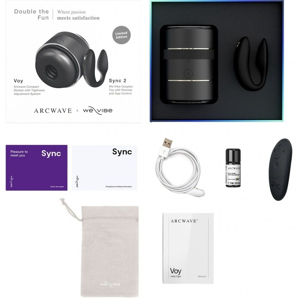 В комплект входять ручний мастурбатор Arcwave Voy із системою регулювання тиску та регульований вібратор для We-Vibe Sync 2 з можливістю підключення через програму.