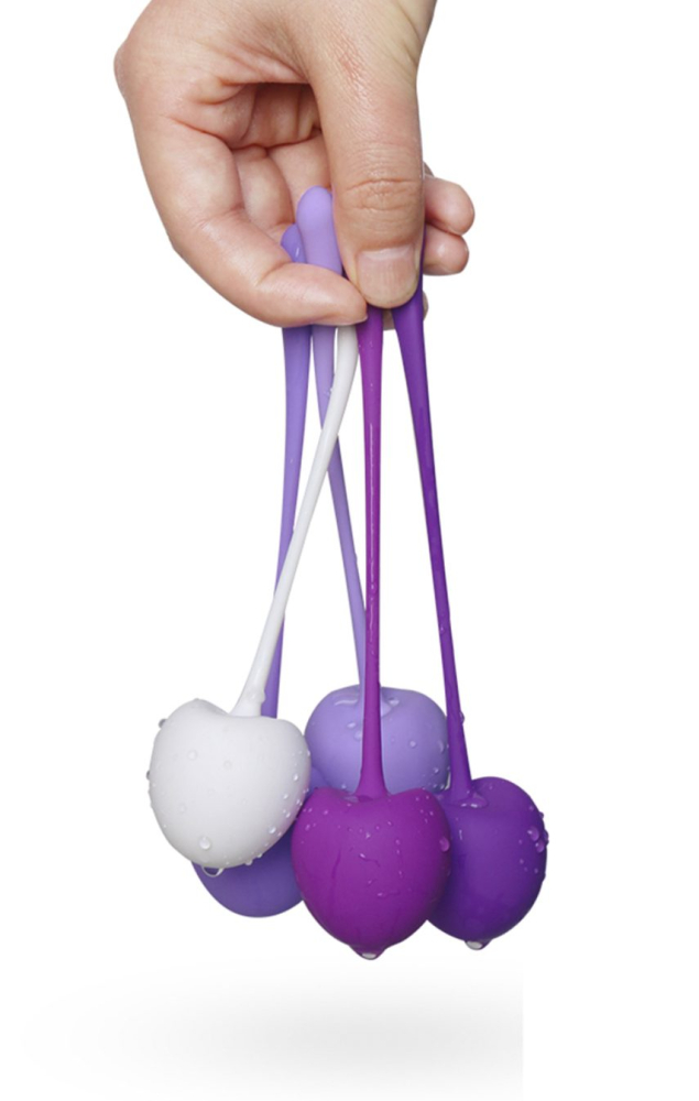На вигляд ці п'ять вагінальних кульок нагадують гроно вишень, а кожна з цих «вишень» допоможе вам зберегти здоров'я та отримати задоволення. Для того, щоб зміцнити м'язи піхви і навчитися їх повністю контролювати, просто введіть кульку всередину і постарайтеся утримати її там. Всі кульки різної ваги, так що, коли ви зрозумієте, що настав час збільшувати навантаження, це можна запросто зробити. Більше того, кульки можуть стати чудовим джерелом додаткової стимуляції під час сексу з партнером чи сольних ласок. Введіть кульку в піхву і попестите себе вібратором, використовуйте іграшку під час анального сексу або навіть спробуйте тримати її під час прогулянки. Нагородою вам стануть не тільки здорові м'язи піхви, але й постійна насолода за рахунок бархатистого силікону, що труться об його стінки. Витягнути кульку запросто можна за гнучкий «хвостик», а використання мастила на водній основі додасть солодким відчуттям ніжності.