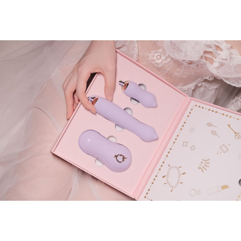 У коробці: кліторальна іграшка, вібруюче яйце, міні-пульсатор пристрій, USB-кабель для зарядки, чохол для зберігання, інструкція з експлуатації.