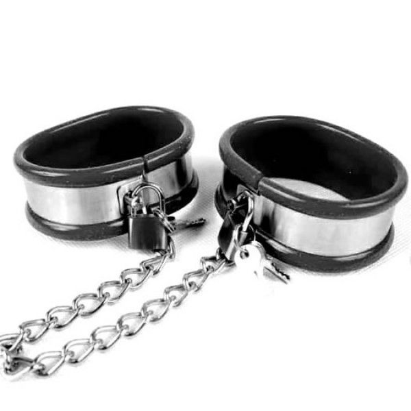 (1) Наручники з підкладкою Чоловічі на чорній Силіконовій підкладці (2) Діаметр регулюється, найбільший діаметр всередині 9.5 cm, найменший діаметр всередині 8.0 cm.(3) вага виробу приблизно становить 360 г.