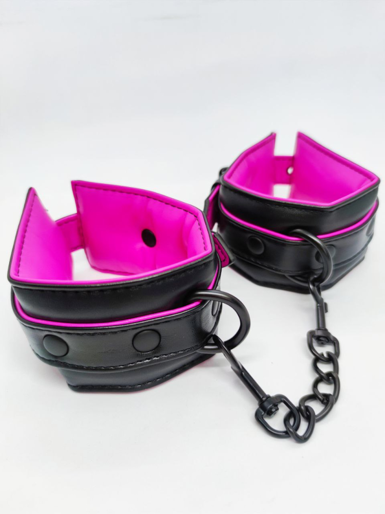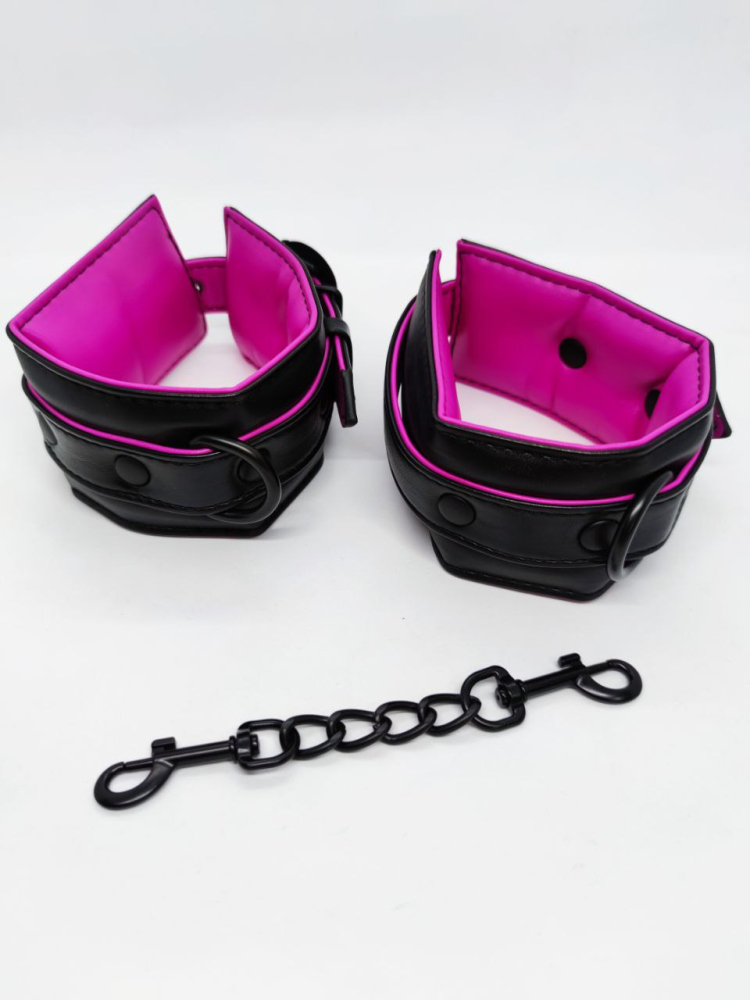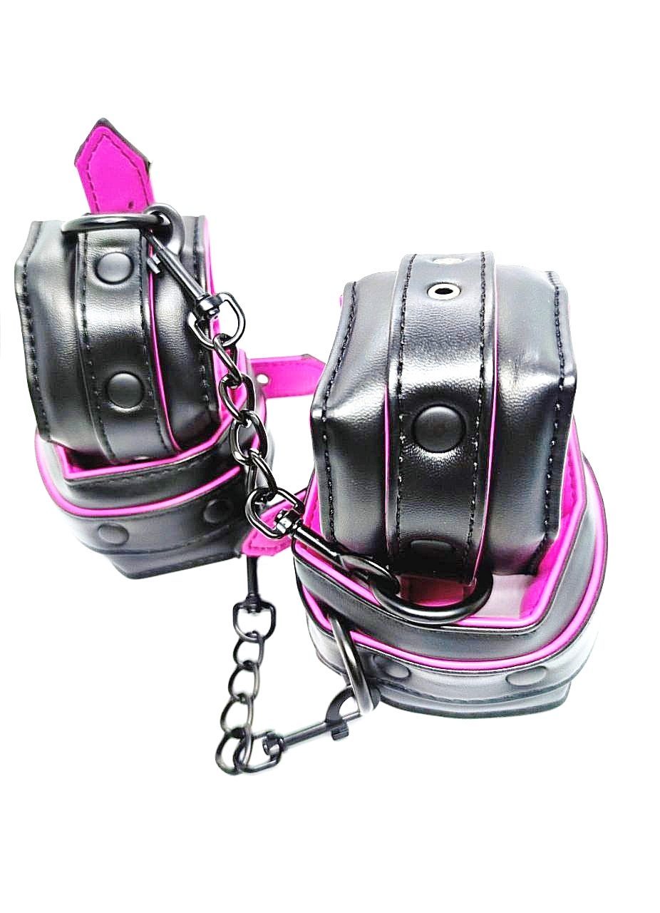 Фіксація для тіла зі штучної шкіри з двостороннім забарвленням чорної зовні та рожевої всередині DS Fetish Kit of handcuffs and ankles