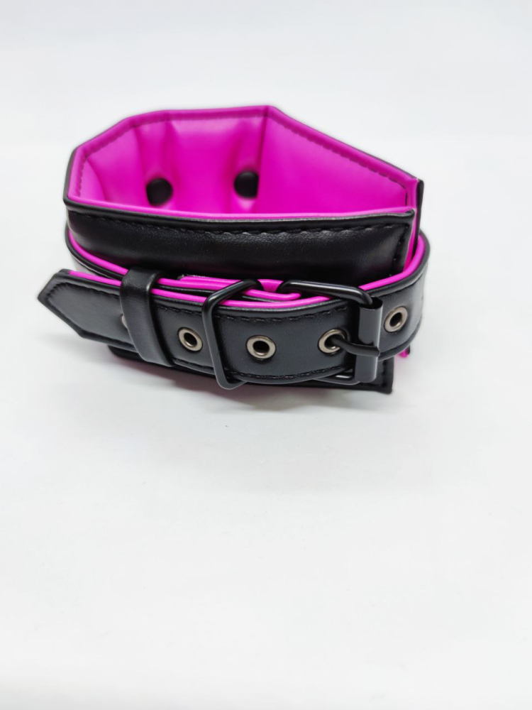 Характеристики Фіксація для тіла зі штучної шкіри з двостороннім забарвленням чорної зовні та рожевої всередині DS Fetish Kit of handcuffs and ankles