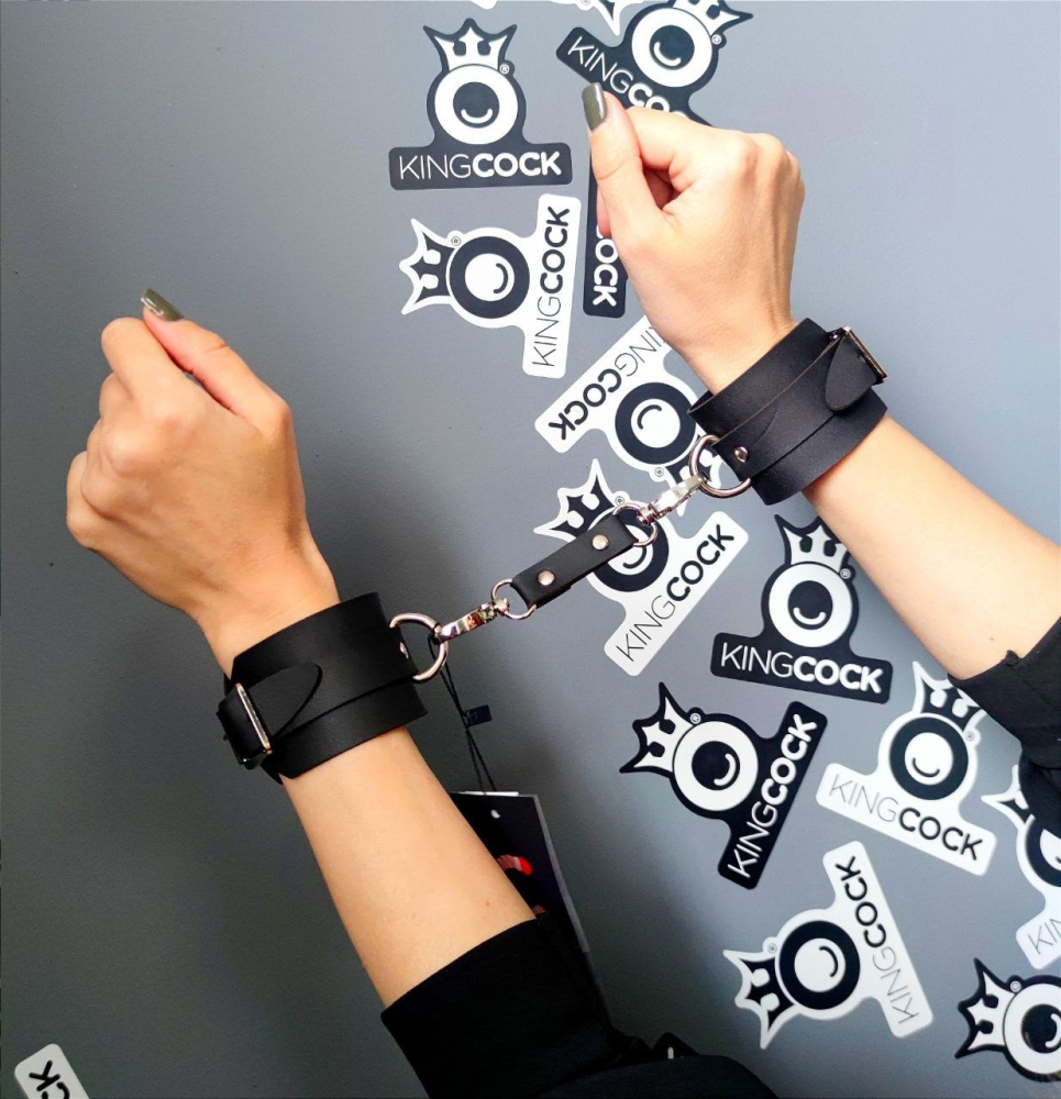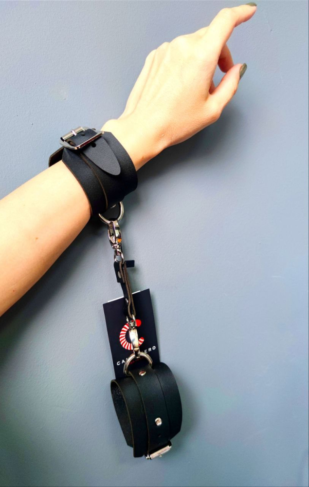 Головною особливістю наручників є манжети з екошкіри з карабінами, що їх з'єднують.