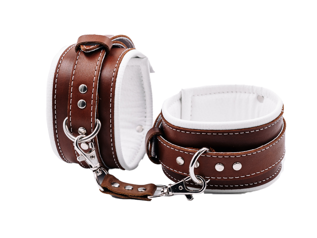Характеристики Наручники БДСМ з натуральної шкіри коричневого кольору з білим рядком Scappa