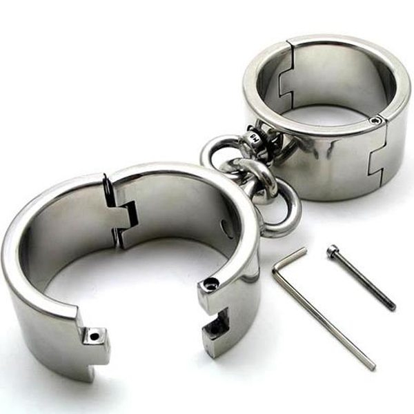 У кожного раба повинен бути власний набір кайданів для зап'ястя. Наручники виготовлені з нержавіючої сталі, що сприяє їх тривалому використанню. Наш Коваль зазвичай виготовляє їх власноруч. Додається ключ до нержавіючого замку і шестигранним гвинтів.