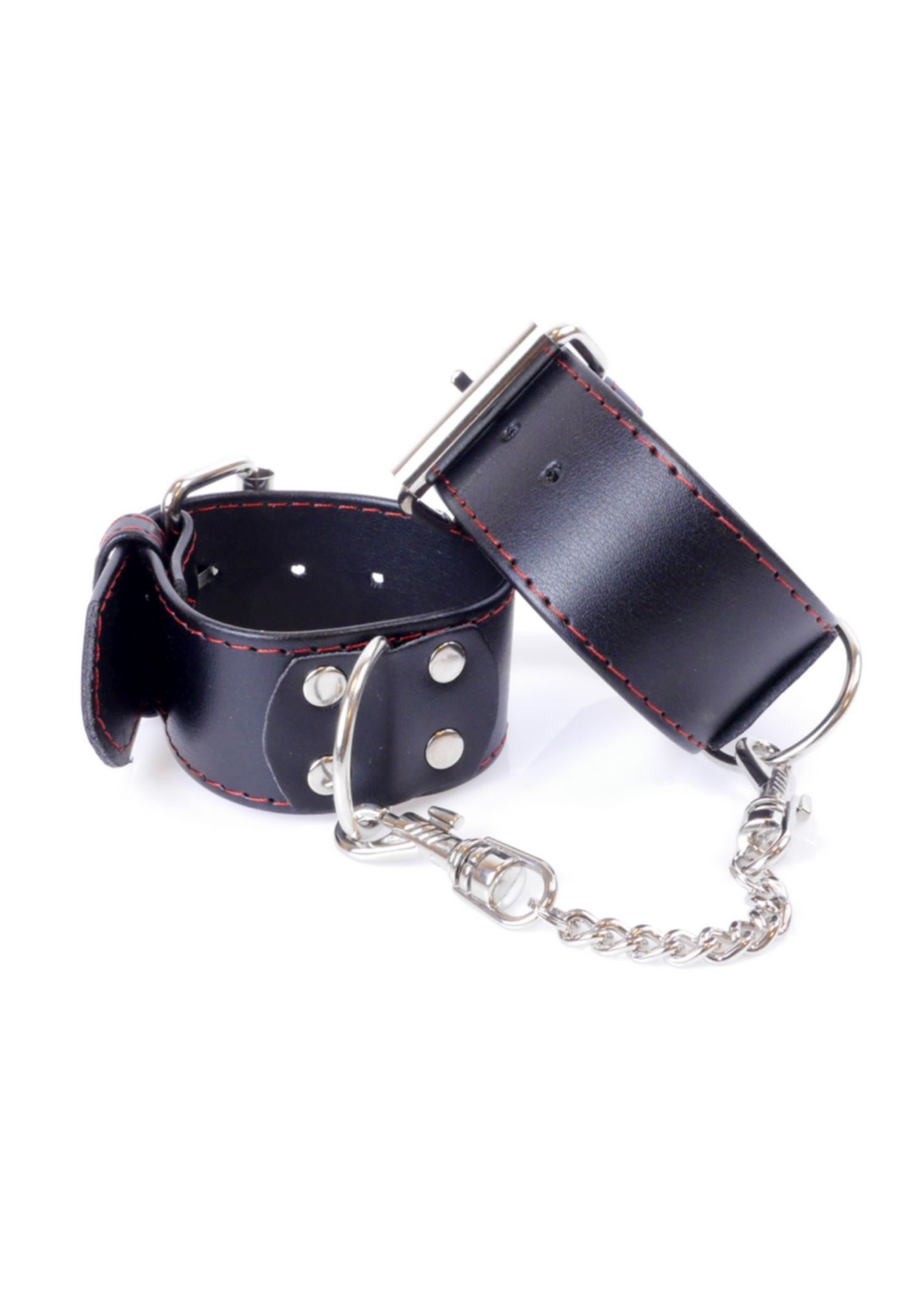 Зв'яжіть свого підлеглого руки або прив'яжіть його до ліжка, щоб отримати цікавий досвід бондажу! Манжети регулюються від 18х22 см, забезпечуючи бездоганну посадку у будь-який час. Манжети кріпляться один до одного металевим ланцюжком, але кліпси також дозволяють їх роз'єднувати та використовувати у поєднанні з іншими іграшками. Довжина ланцюжка: 5 см + карабіни (всього 10 см). Манжети виготовлені зі штучної шкіри, м'якої на дотик, що робить їх зручною в носінні. Ширина манжети: 4 див.