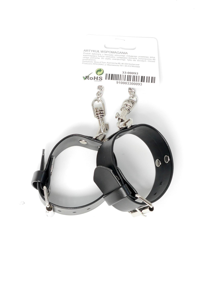 Зв'яжіть свого підлеглого руки або прив'яжіть його до ліжка, щоб отримати цікавий досвід бондажу! Манжети регулюються від 18х22 см, забезпечуючи бездоганну посадку у будь-який час. Манжети кріпляться один до одного металевим ланцюжком, але кліпси також дозволяють їх роз'єднувати та використовувати у поєднанні з іншими іграшками. Довжина ланцюжка: 5 см + карабіни (всього 10 см). Манжети виготовлені зі штучної шкіри, м'якої на дотик, що робить їх зручною в носінні. Ширина манжети: 3 див.