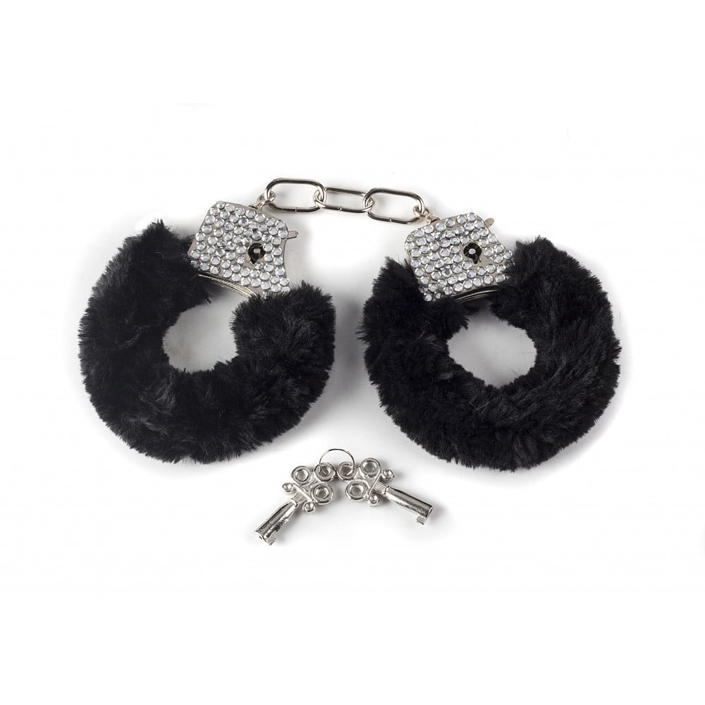 Наручники металеві Bondage Collection зі стразами та чорним хутром