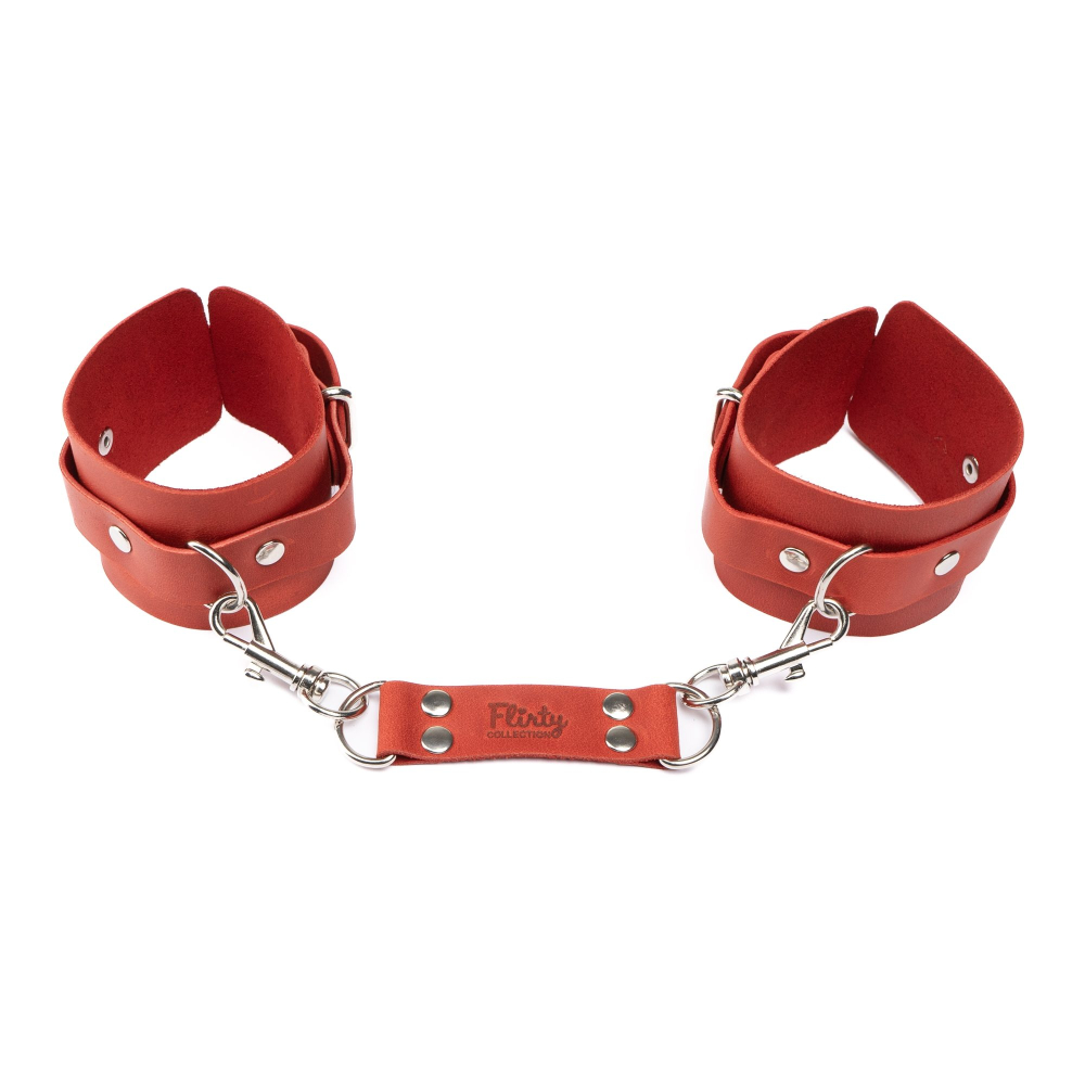 Наручники на двох карабінах БДСМ із натуральної шкіри червоного кольору Flirty Leather