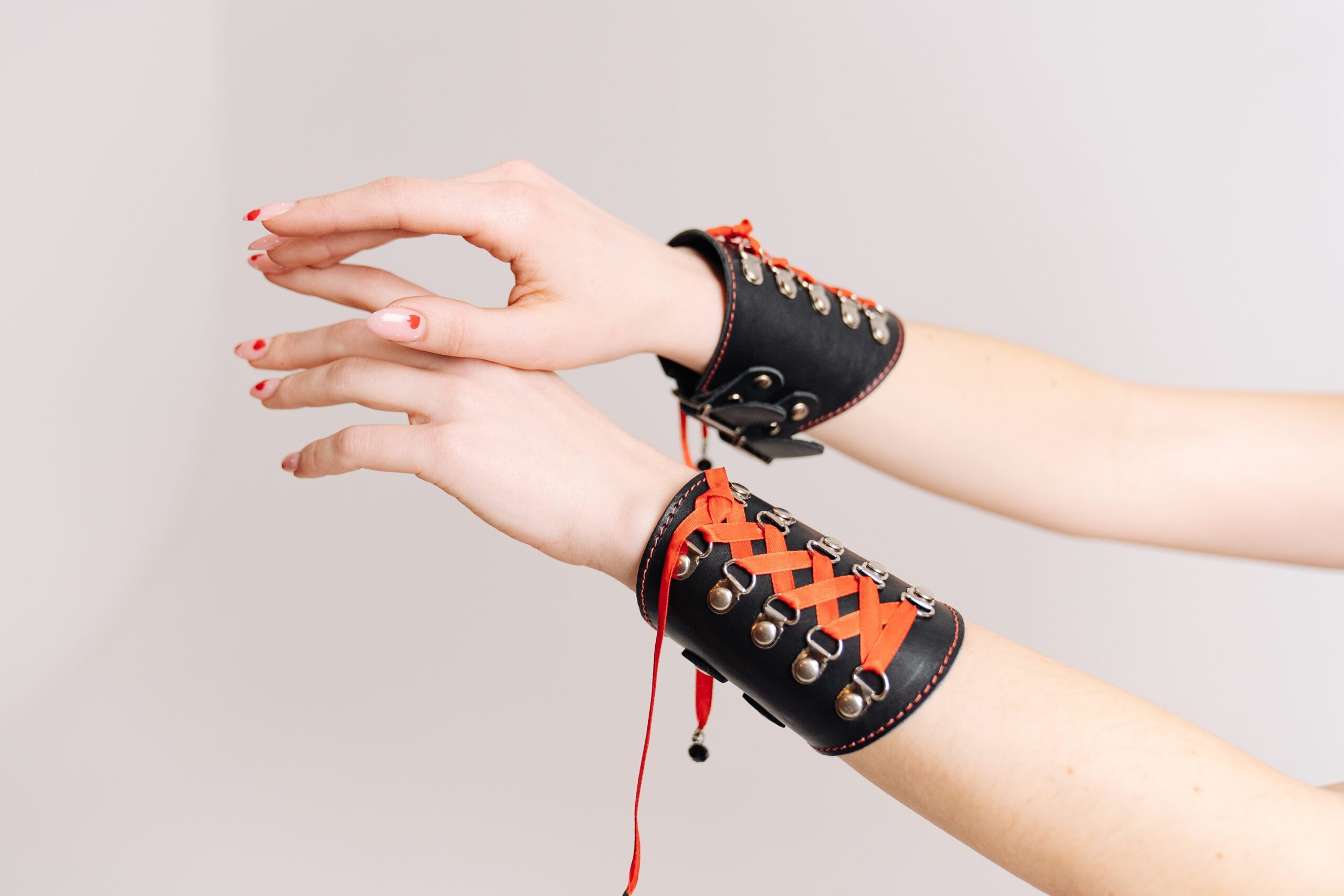 Наручники на шнурівці БДСМ із натуральної шкіри чорного кольору Scappa