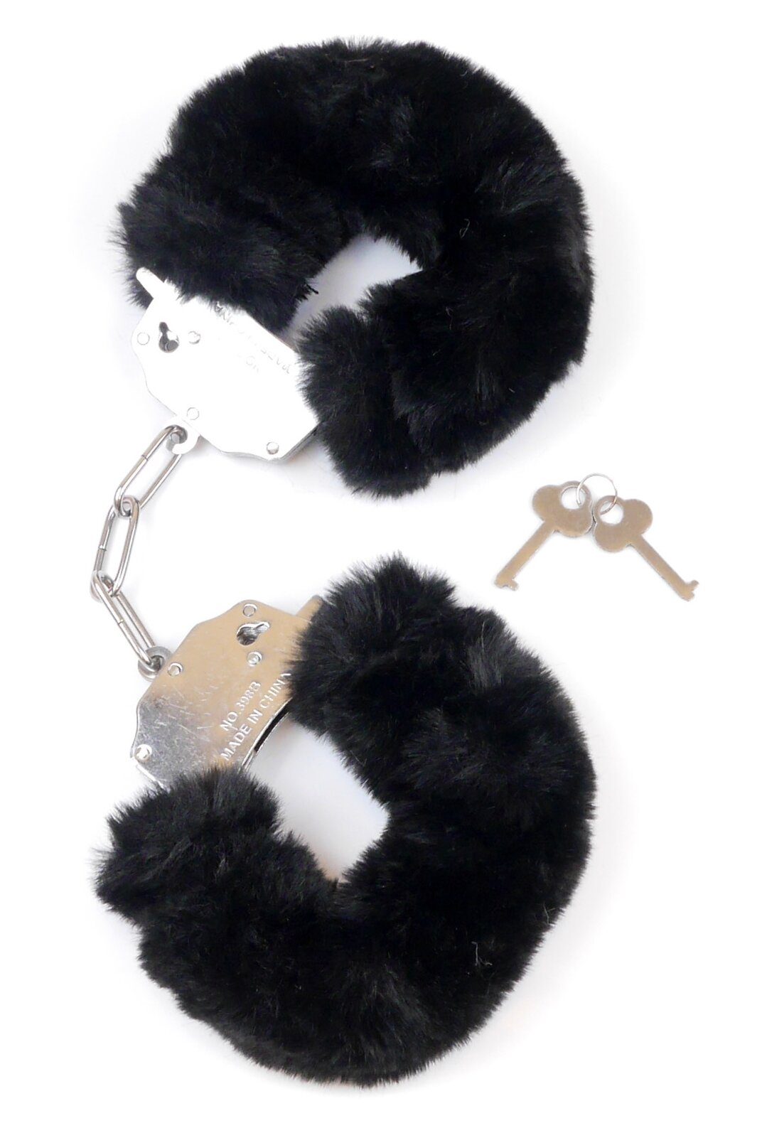 Наручники металеві з хутром для сексу чорні SKN Handcuffs