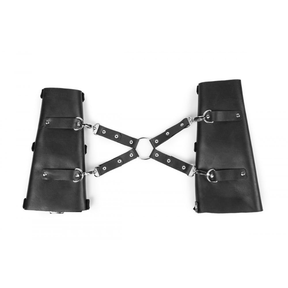 Наручники з Х подібними ремінцями БДСМ штучна шкіра чорного кольору Candy Hero модель HC11B розмір One Size