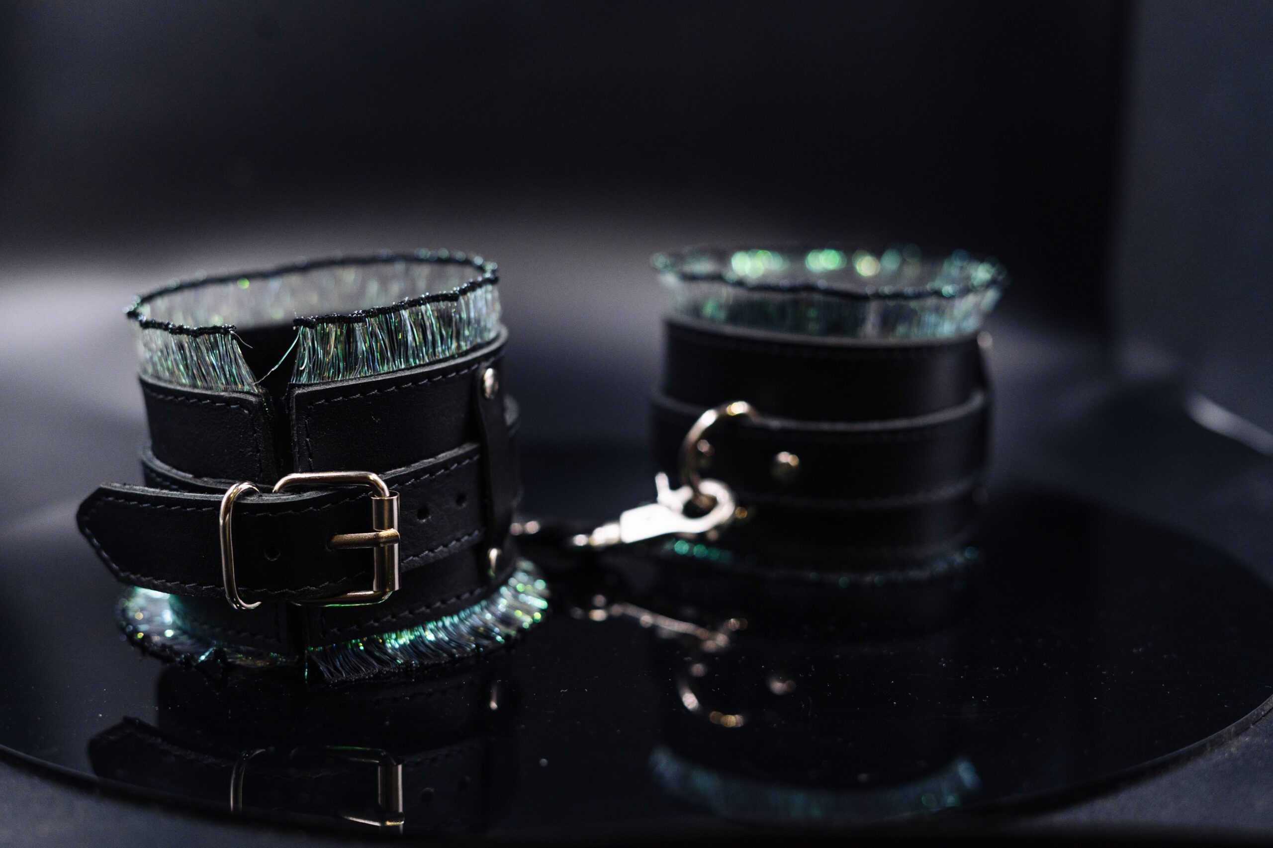 Характеристики Наручники з тасьмою БДСМ із натуральної шкіри чорного кольору Scappa