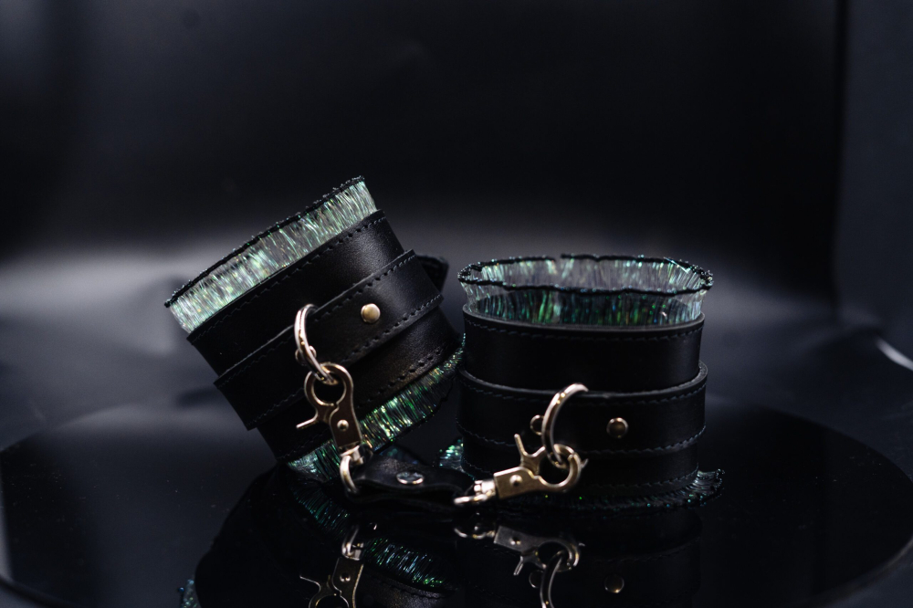 Наручники з тасьмою БДСМ із натуральної шкіри чорного кольору Scappa