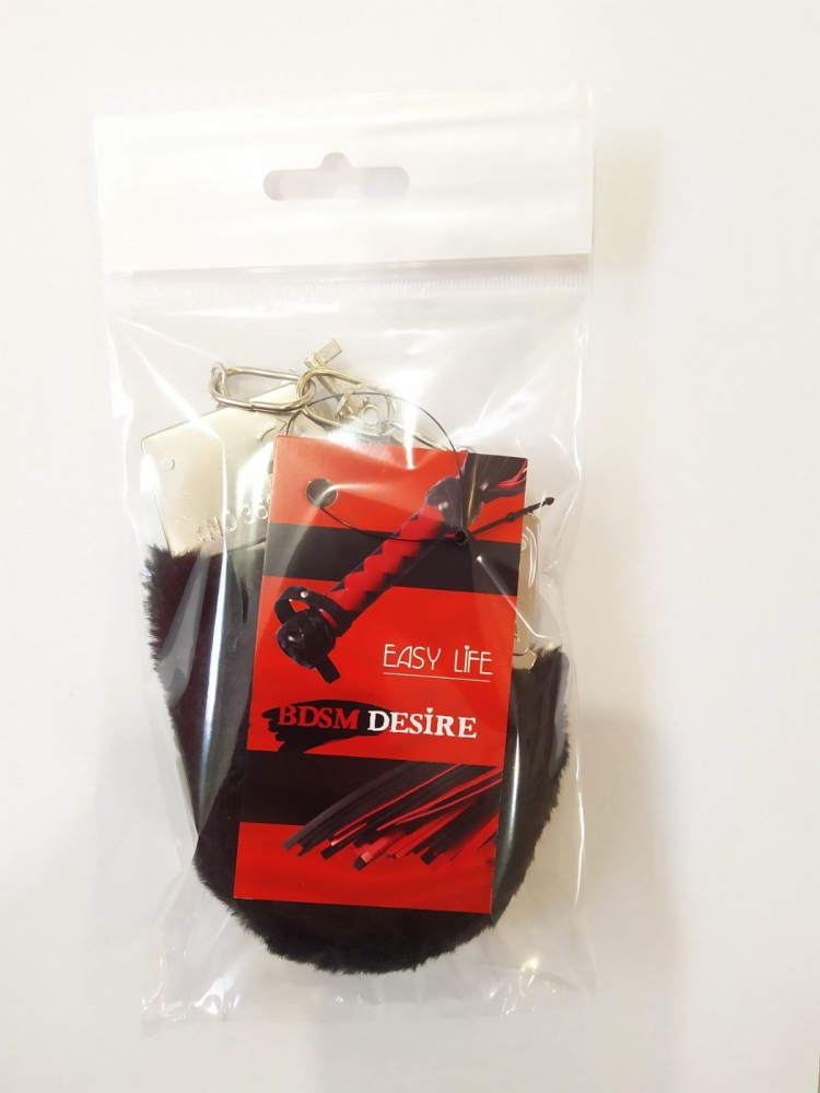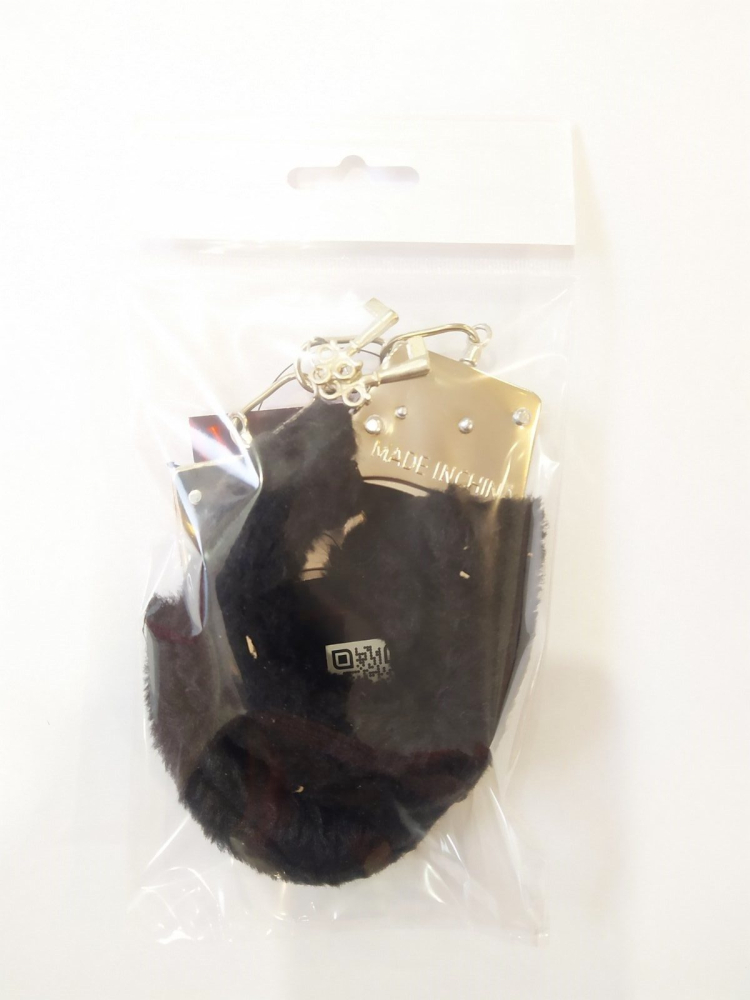 Наручники з чорним хутром виконані з нікельованої сталі. Браслети обшиті штучним хутром чорного кольору. У комплекті з наручниками йдуть два ключика, надіті на заводне кільце. На наручниках є важелі, за допомогою яких їх можна відкрити в разі втрати ключів.