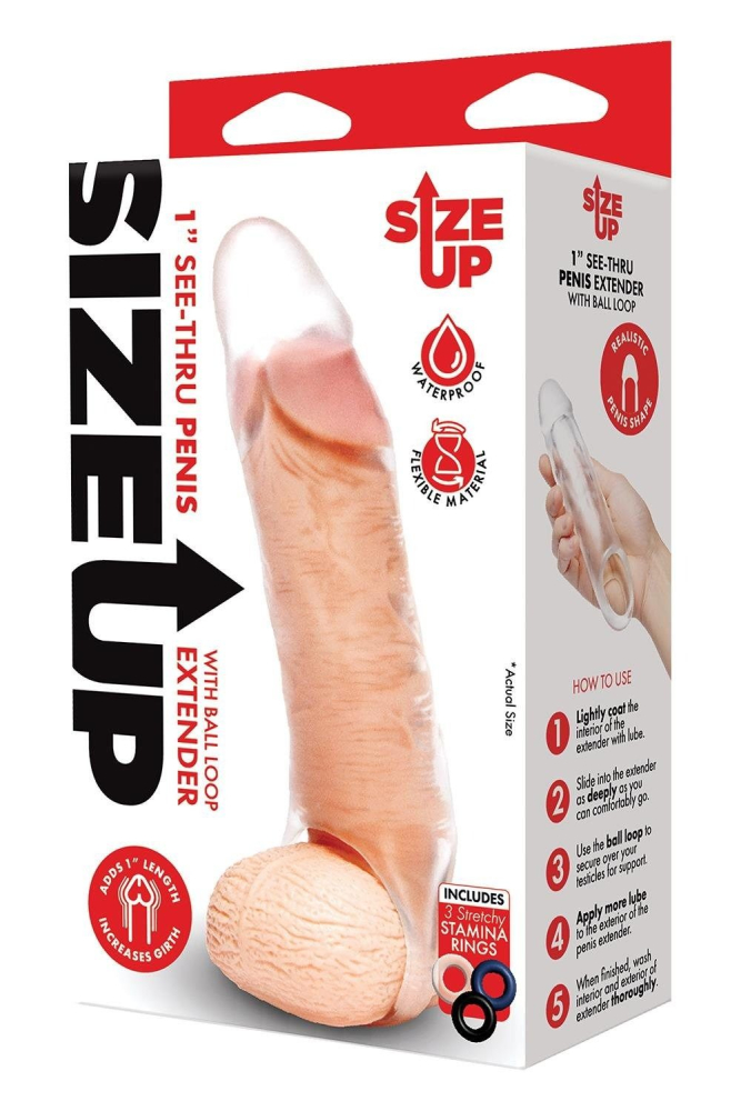 Додайте додаткову довжину та товщину за допомогою подовжувача пеніса See-Thru Penis Extender від Size Up. Реалістична форма та деталі, що створюють чуттєві відчуття, надихнуть вас на фантазійну гру між парами.