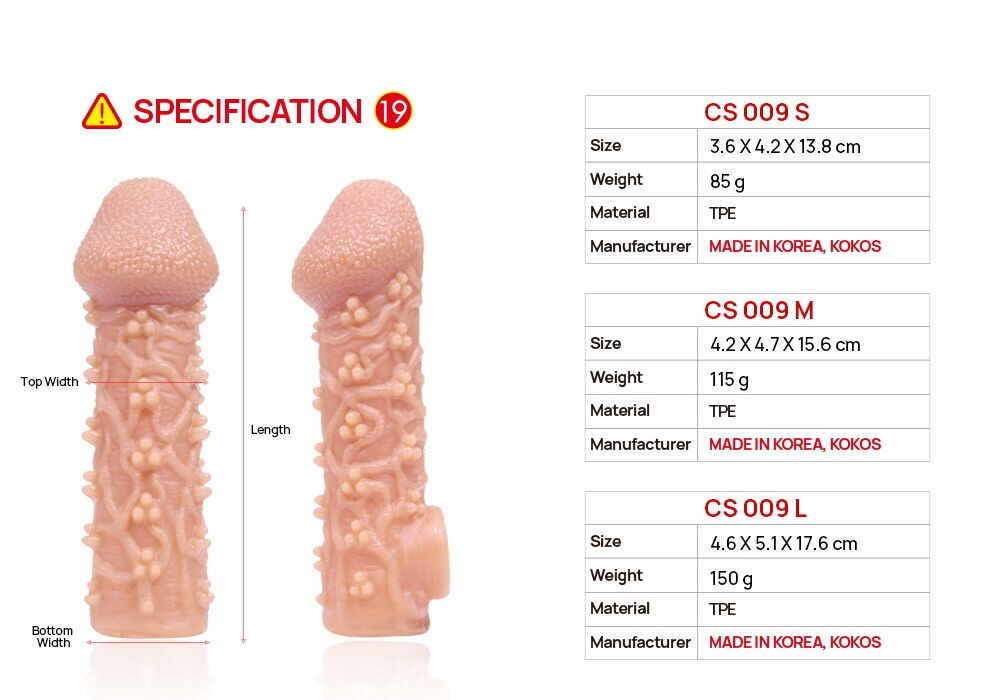 Характеристики Насадка на член з отвором для мошонки тілесного кольору Kokos Cock Sleeve CS 009 розмір L