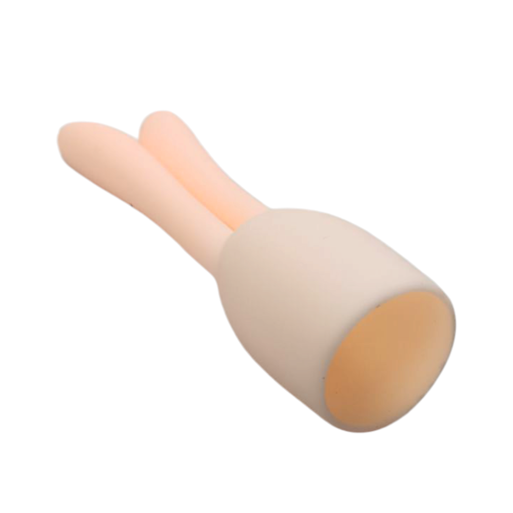 З насадкою у формі милого кролика ваша звична мастурбація перетворитися на тривалу чуттєву гру. Насадка використовується для нових відчуттів під час еротичного масажу, а також стимуляції ерогенних зон. Цей еротичний аксесуар створений спеціально для того, щоб змінити вигляд вашого звичного вібратора та відчувати всі стрімкі імпульси вібратора м'якше. Зроблений із високоякісного медичного силікону у ніжному пудровому кольорі. Форма шапочки з довгими вушками виконують функцію тремтіння лоскоту, від якої прокидається все тіло і збудження досягає піку. Матеріал приємний на дотик і ніжно стикається зі шкірою, не дратуючи її. Перед та після використання промивайте теплою водою з м'яким милом або обробляйте спреєм для інтимних виробів. Використовуйте лише з лубрикантом на водній основі. Загальна довжина 100 мм. Діаметр насадки 23 мм. Матеріал силікон Колір пудровий. Упаковка пакет