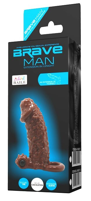 Вібронасадка на член реалістична коричневого кольору Lybaile Brave Man