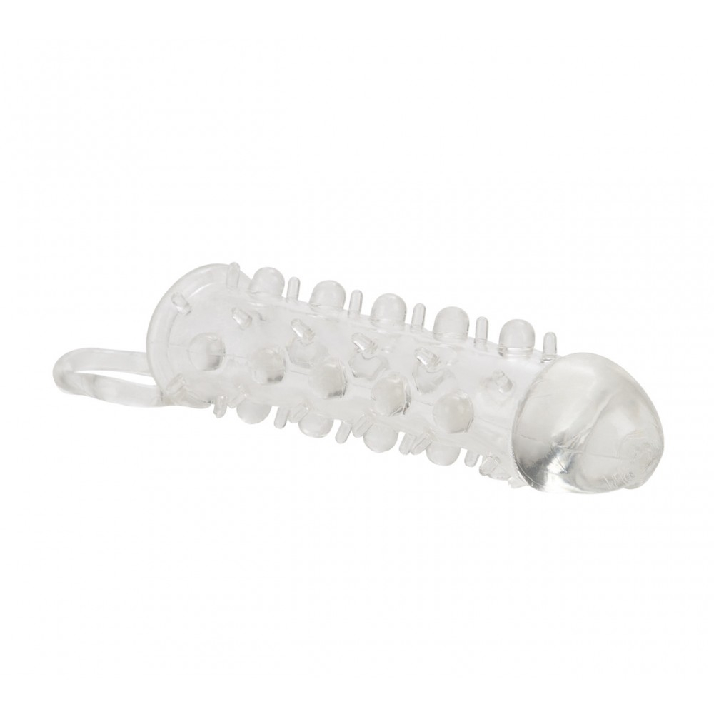 Насадка на член рельєфна з петлею на мошонку прозорого кольору California Exotic Novelties