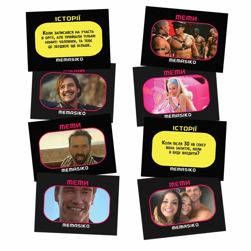 7. Гра може продовжуватися до моменту використання всіх карток з історіями. Карти мемов можна повторно використовувати, перемішавши використані меми.