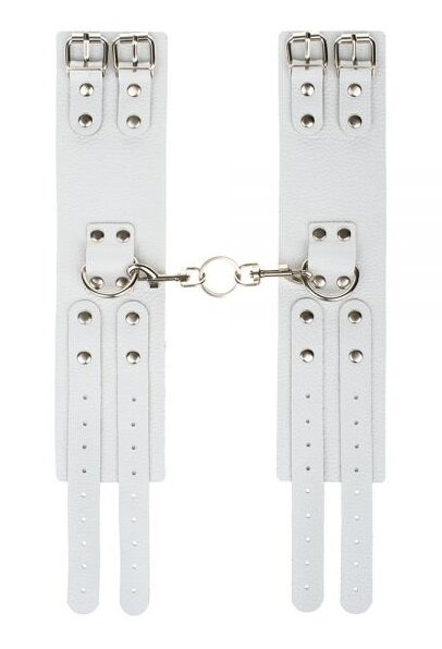 Дизайнерські кайдани з натуральної шкіри високої якості для любителів обмежити рухи свого партнера в ліжку. Закріпіть щиколотки вашого партнера, і він не зможе протистояти вам і вашим пестощів. Манжети регулюються, і з'єднані між собою міцними карабінами.