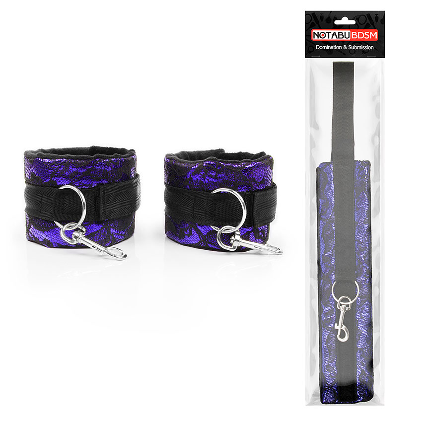 Кайдани чорно-фіолетові з мереживом для БДСМ Notabu