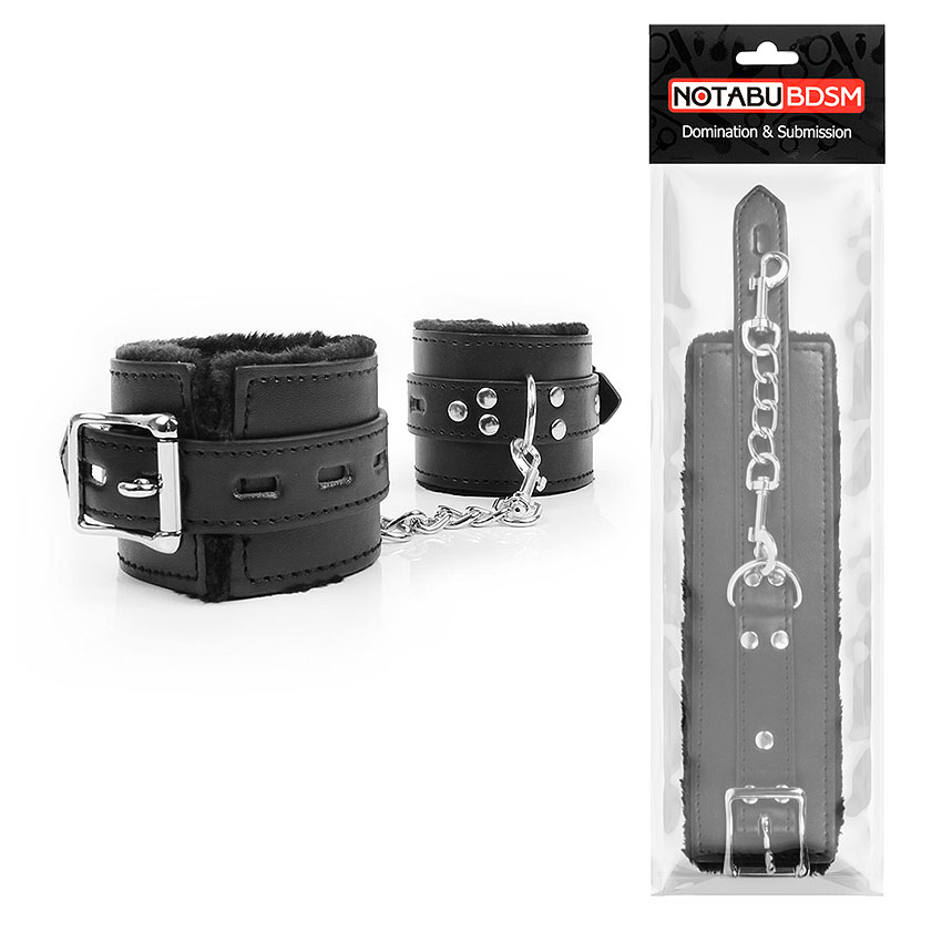 Внутрішня сторона виробів оброблена хутром, який перешкоджає натирання шкіри. Розмір наручників регулюється за допомогою ременів.