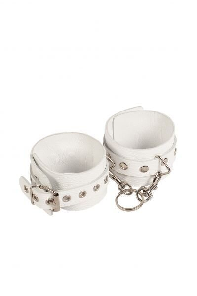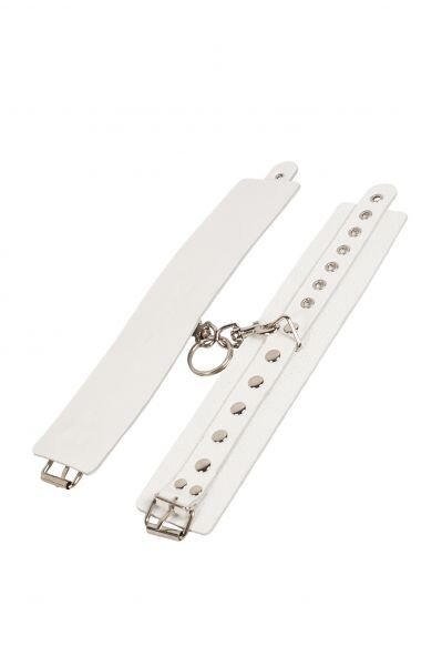 Білі наручники з металевими заклепками.
