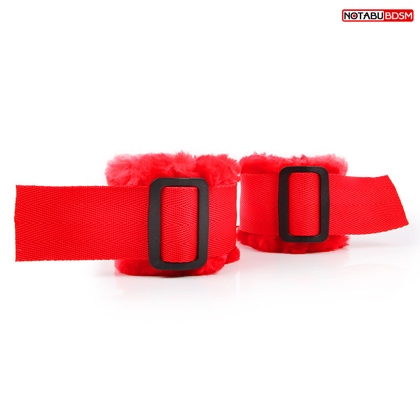 Кайдани для фіксації рук червоні з хутром для еротичних забав Notabu