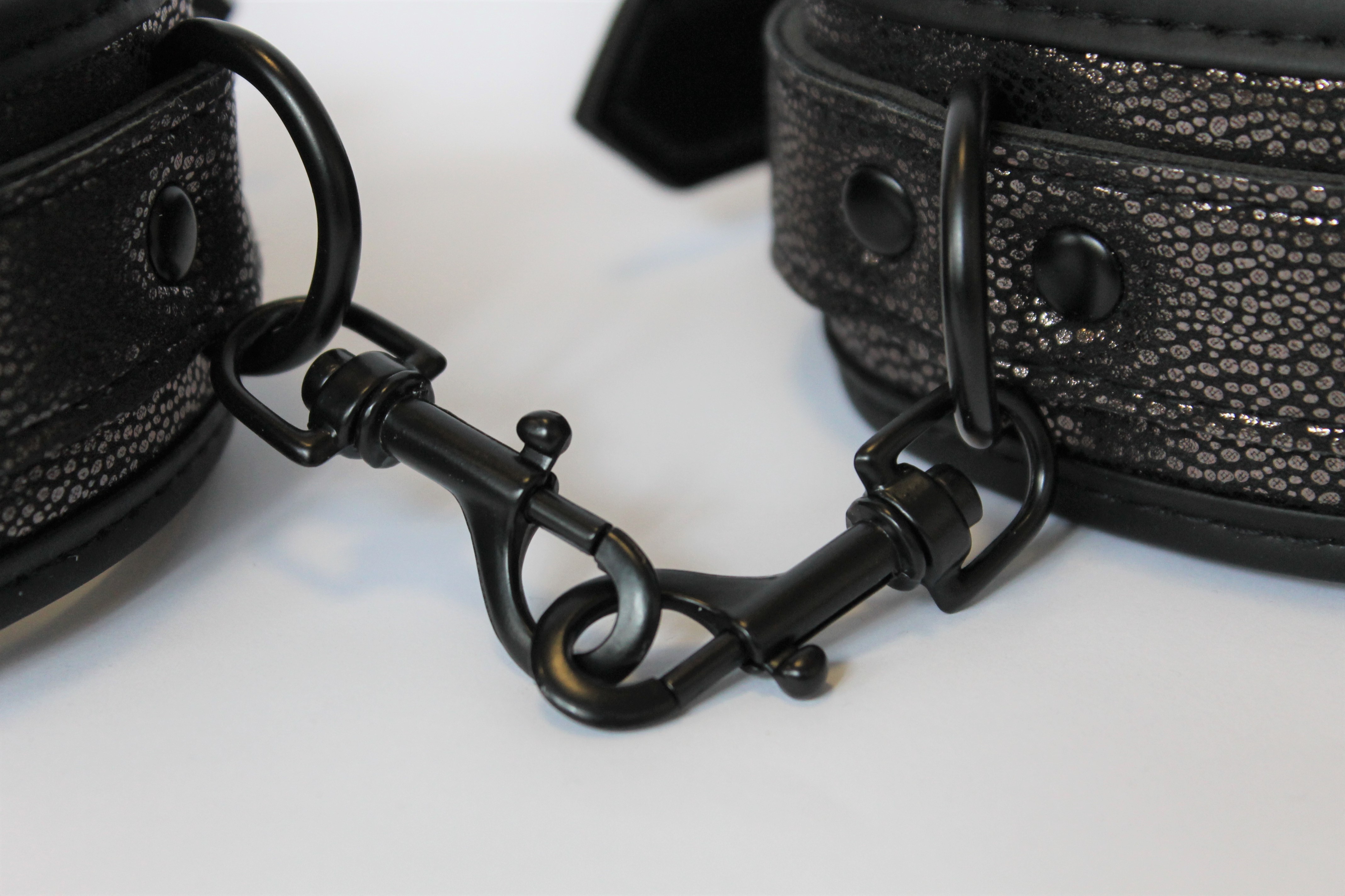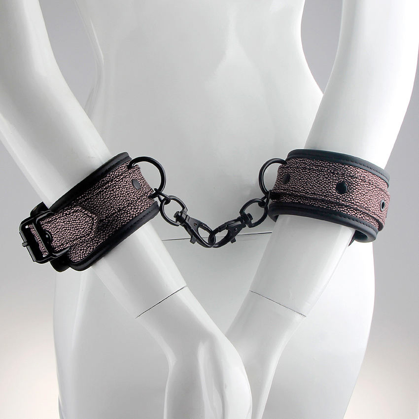 Кайдани для рук EROKEY з екошкіри і металу чорні 26 см