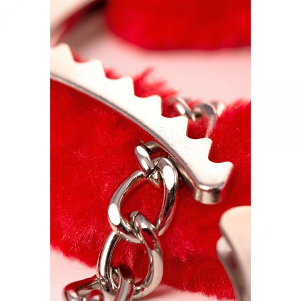 Кайдани з хутром для БДСМ червоні Metal Ankle Cuffs