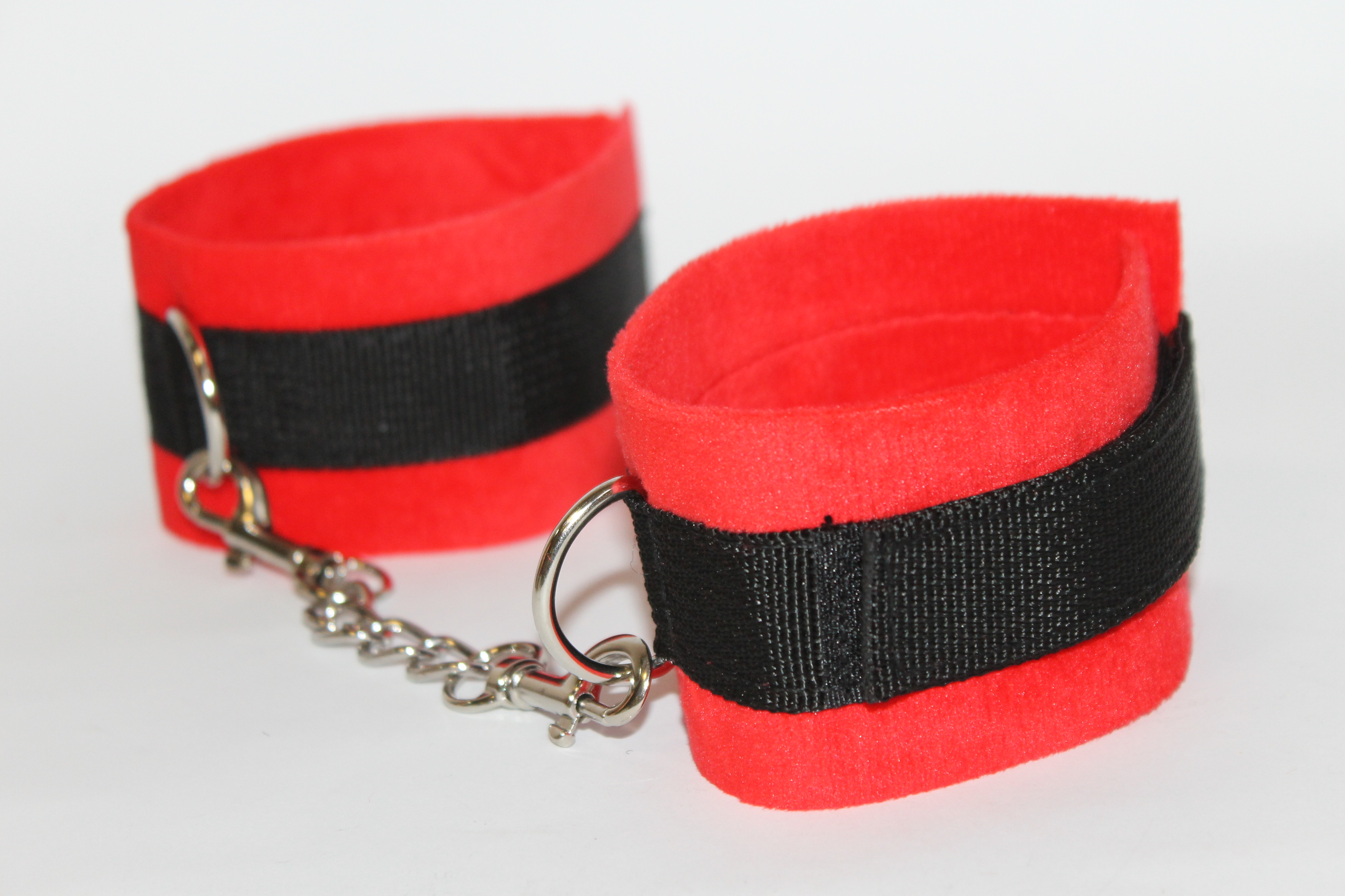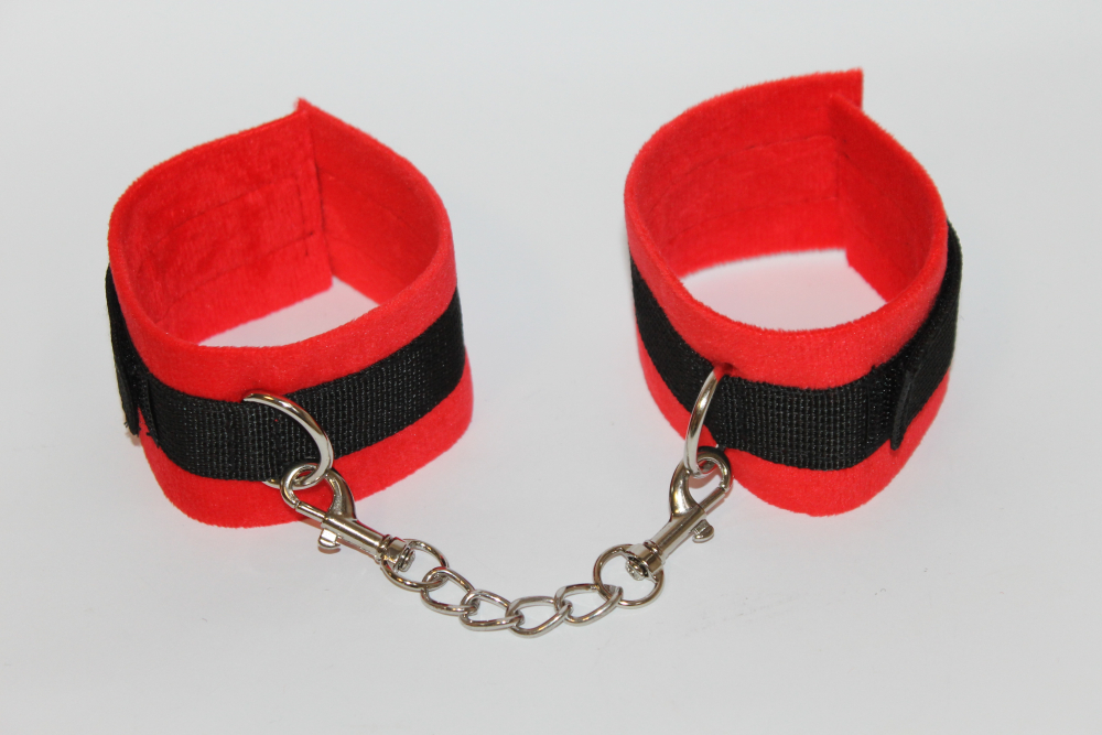М'які наручники для всіх шанувальників soft-bondage, виготовлені з текстильного матеріалу і металевої фурнітури з нікелевим покриттям. Особлива конструкція наручників, забезпечує зручну фіксацію рук, вони обладнані двома кільцями для прикріплення ланцюгів або повідків, а між собою з'єднані двома карабінами з невеликим ланцюжком. Наручники мають універсальний розмір і фіксуються за допомогою липучок.