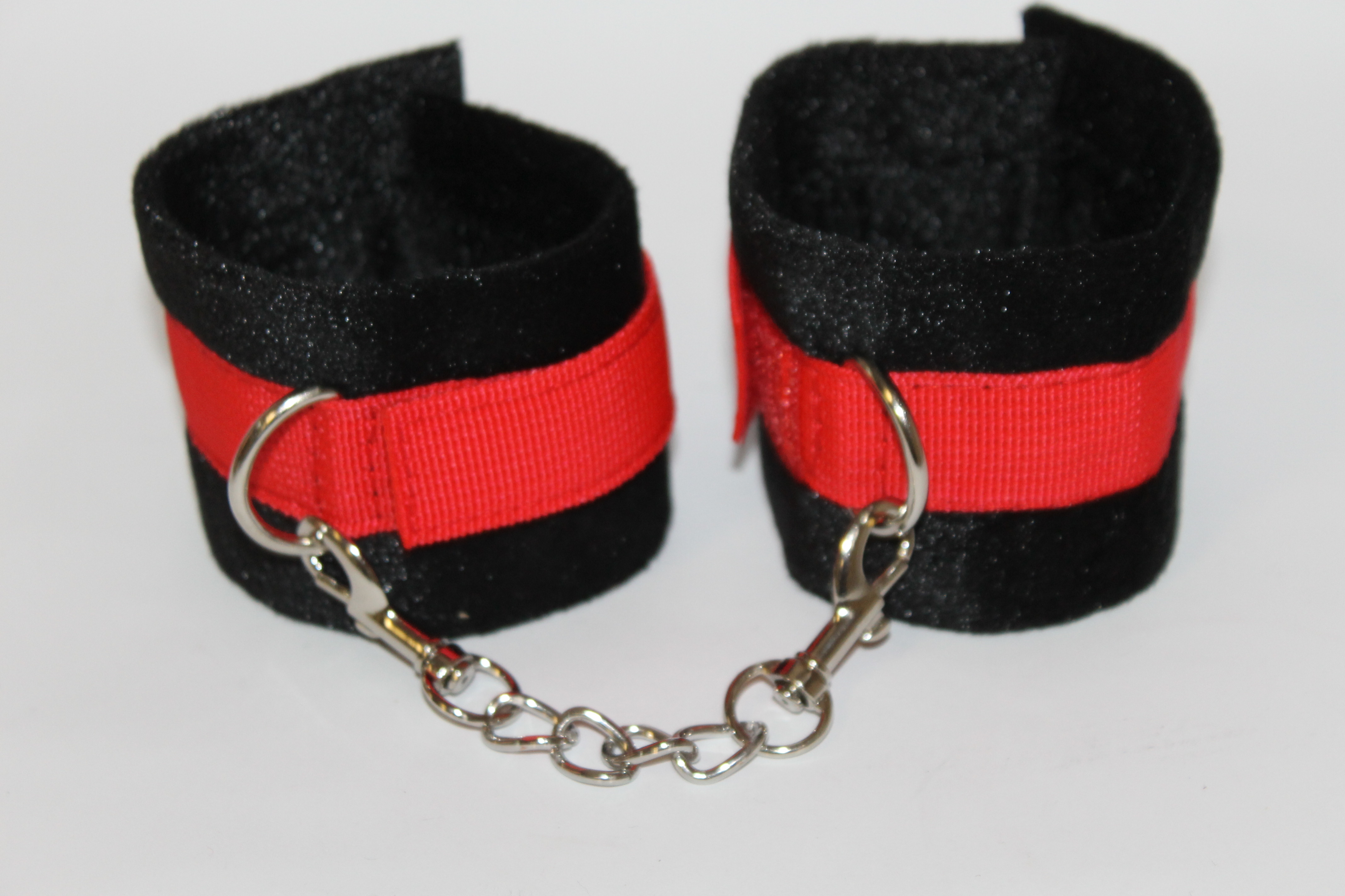 М'які наручники для всіх шанувальників soft-bondage, виготовлені з текстильного матеріалу і металевої фурнітури з нікелевим покриттям. Особлива конструкція наручників, забезпечує зручну фіксацію рук, вони обладнані двома кільцями для прикріплення ланцюгів або повідків, а між собою з'єднані двома карабінами з невеликим ланцюжком. Наручники мають універсальний розмір і фіксуються за допомогою липучок.